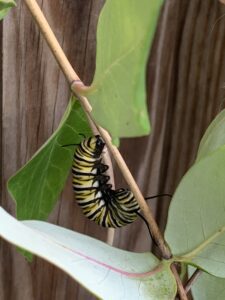 We started looking up information on line to try to understand what this caterpillar or, as we began saying our little “cat”, was up to from sites such as: https://monarchjointventure.org/monarch-biology/life-cycle.